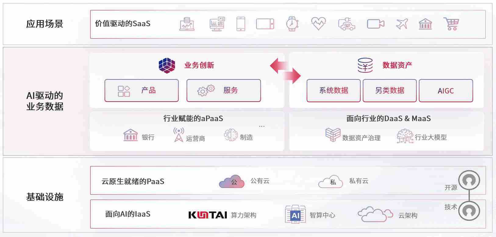 数字时代,,,围绕企业数字化转型的关键要素,,广发体育数码开创性的提出数云融合战略和技术体系框架,,着力在云原生、、、数字原生、、、AI原生和信创产业上架构产品和服务能力,,为处在不同数字化转型阶段的快消零售、、、汽车、、金融、、、医疗、、、、政企、、、教育、、运营商等行业客户提供泛在的敏捷IT能力和融合的数据驱动能力,,,构建跨界融合创新的数字业务场景和新业务模式,,,,助力企业级客户建立面向未来的核心能力和竞争优势,,全面推动社会的数字化、、智能化转型升级。。。。